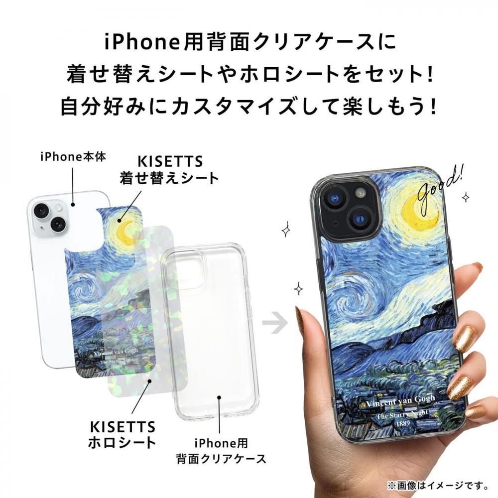 【iPhone対応】スマホ インナーシート 10枚セット(ゴッホ Vol.1・ホロ)iPhoneクリアケース用背面着せ替えシート キラキラ【KISETTS】アート 星月夜 gogh